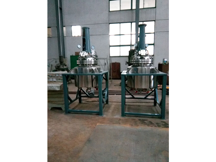 反應(yīng)釜由鍋體、鍋蓋、攪拌器、電加熱油夾管、支承及傳動(dòng)裝置、軸封裝置、溢油槽等組成,并配有電加熱棒及測(cè)溫、測(cè)壓表。