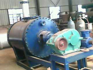 干燥機(jī)結(jié)構(gòu)簡單,操作方便,使用周期長,性能穩(wěn)定可靠,蒸汽耗量小,適用性能強(qiáng),產(chǎn)品質(zhì)量好,特別適用于不耐高溫、易燃、調(diào)溫下易氧化的膏狀物料的干燥,該機(jī)經(jīng)用戶長期使用證明是一良好的干燥設(shè)備。原理:被干燥物料從殼體上方正中間加入,在不斷正反轉(zhuǎn)動的耙齒的攪拌下,物料軸向來回走動,與殼體內(nèi)壁接觸的表面不斷新,受到蒸汽的間接加熱,耙齒的均勻攪拌,粉碎棒的粉碎,使物料表面水分有利的排出,氣化的水分經(jīng)干式除塵器、濕式除塵器、冷凝器,從真空泵出口處放空。