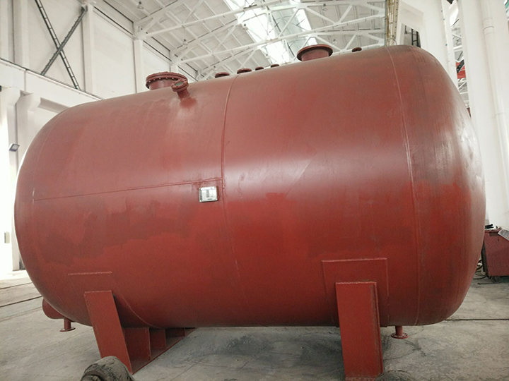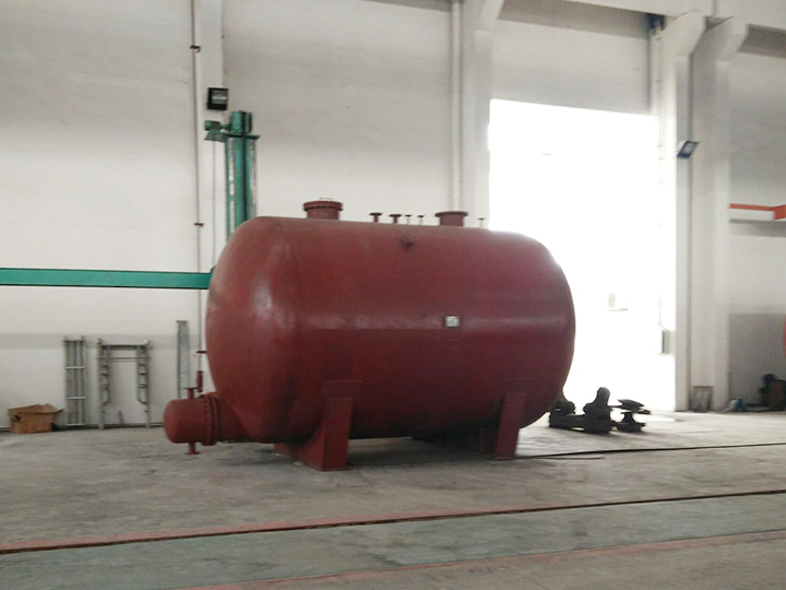 蒸餾釜,涉及一種化工生產(chǎn)中蒸餾所使用的釜。主要是為解決現(xiàn)有的蒸餾釜在生產(chǎn)過程中當(dāng)物料中含有固狀物及高沸點(diǎn)物時(shí)需間斷檢修清理的問題而設(shè)計(jì)的。它包括蒸餾釜?dú)んw,在蒸餾釜?dú)んw上方是上封頭,上封頭上有氣體出口,上封頭下方有除沫器,除沫器下方為貯料室,貯料室上部有進(jìn)料口,室內(nèi)設(shè)立式蒸發(fā)器,蒸餾釜下部為固狀物及高沸點(diǎn)物沉降室,在沉降室內(nèi)設(shè)攪拌器,攪拌器軸通過軸封與外部電機(jī)相連,蒸餾釜底部設(shè)固狀物及高沸點(diǎn)物排出口。優(yōu)點(diǎn)是可隨時(shí)排出固狀物及高沸點(diǎn)物,無須間斷檢修清理,保證生產(chǎn)連續(xù)進(jìn)行。