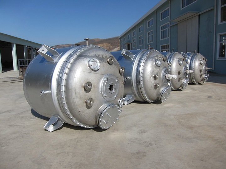 蒸餾釜,涉及一種化工生產中蒸餾所使用的釜。主要是為解決現(xiàn)有的蒸餾釜在生產過程中當物料中含有固狀物及高沸點物時需間斷檢修清理的問題而設計的。它包括蒸餾釜殼體,在蒸餾釜殼體上方是上封頭,上封頭上有氣體出口,上封頭下方有除沫器,除沫器下方為貯料室,貯料室上部有進料口,室內設立式蒸發(fā)器,蒸餾釜下部為固狀物及高沸點物沉降室,在沉降室內設攪拌器,攪拌器軸通過軸封與外部電機相連,蒸餾釜底部設固狀物及高沸點物排出口。優(yōu)點是可隨時排出固狀物及高沸點物,無須間斷檢修清理,保證生產連續(xù)進行。